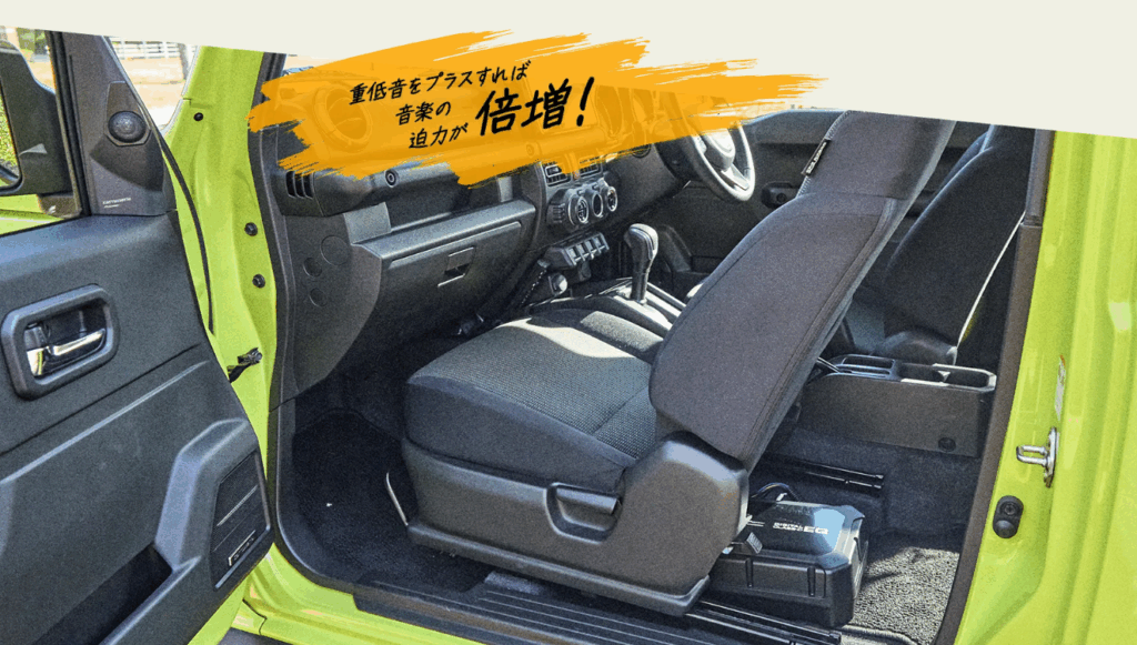 「アウトドアに強いジムニー」と「音楽を楽しめるジムニーライフ」を両立させることができます。
