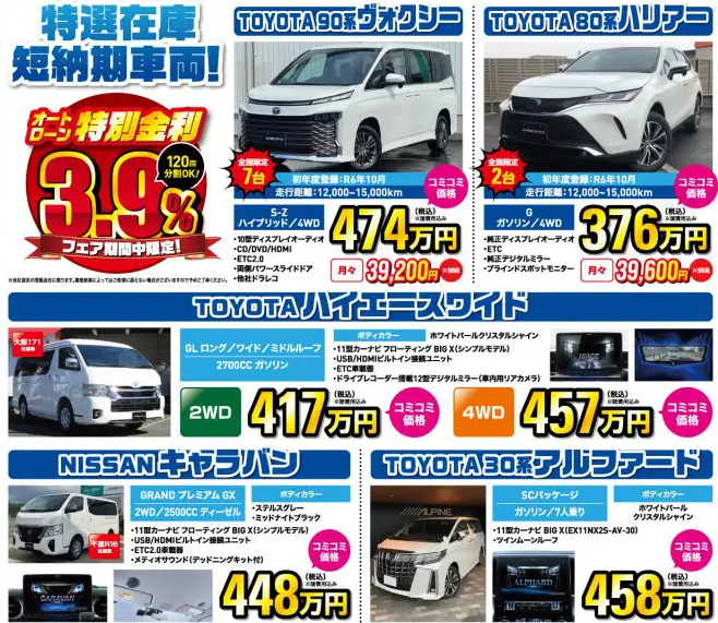ハイエースワイド・90系ヴォクシーなど、今なら 即納可能車 をご用意!