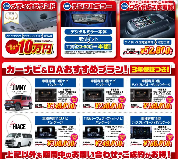 アルパイン大人気の メティオサウンド、最新 大画面ナビ・デジタルミラー が特別価格!