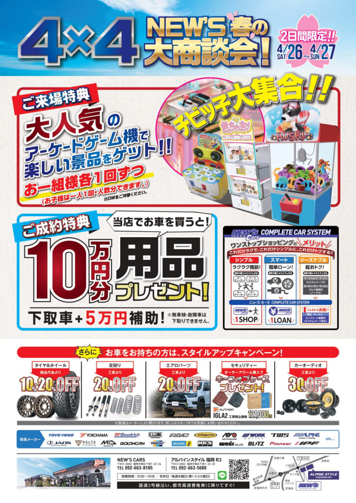 4/26㈯~4/27㈰の2日間『4x4 NEW’S 春の大商談会』を開催します♪