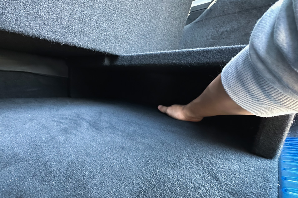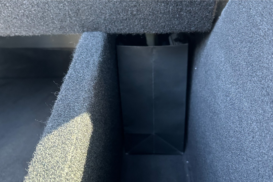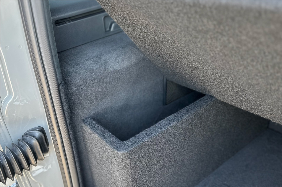 さらに、天板を支える脚の部分は仕切りの役目としても機能し、走行中に荷物が動いて潰れやすい箱物や紙袋の破損防止や、車検証など大切な物や小物類、人目に触れたくないサプライズプレゼントなどの収納場所としても役立つスペースとしてご利用いただけます。