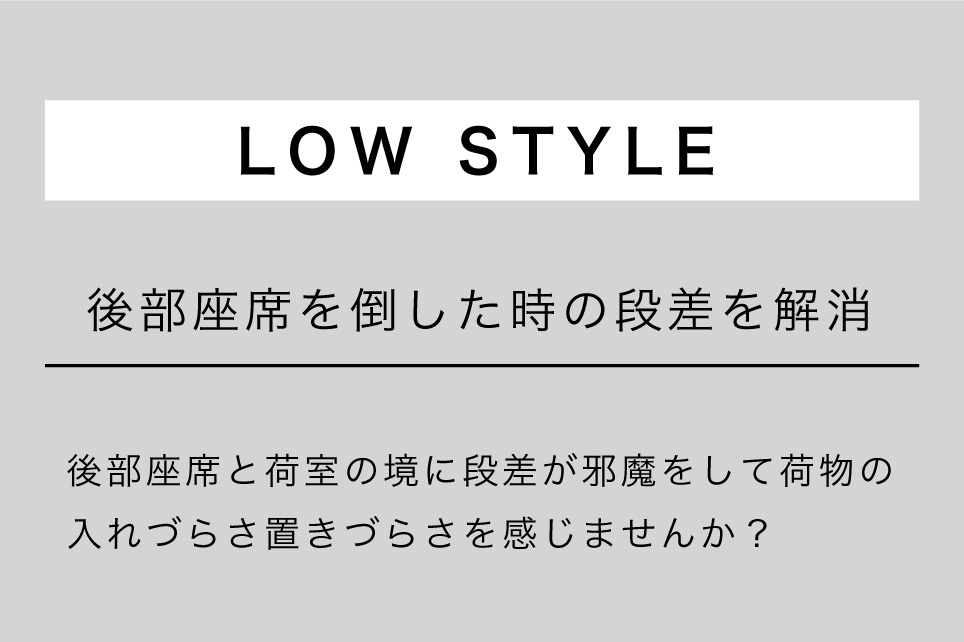 LOW STYLEでラゲッジボードを設置すれば、荷室スペースと後部座席の余計な段差が解消され、奥行き約1,500mmのストレスのないフルフラット空間が完成します。