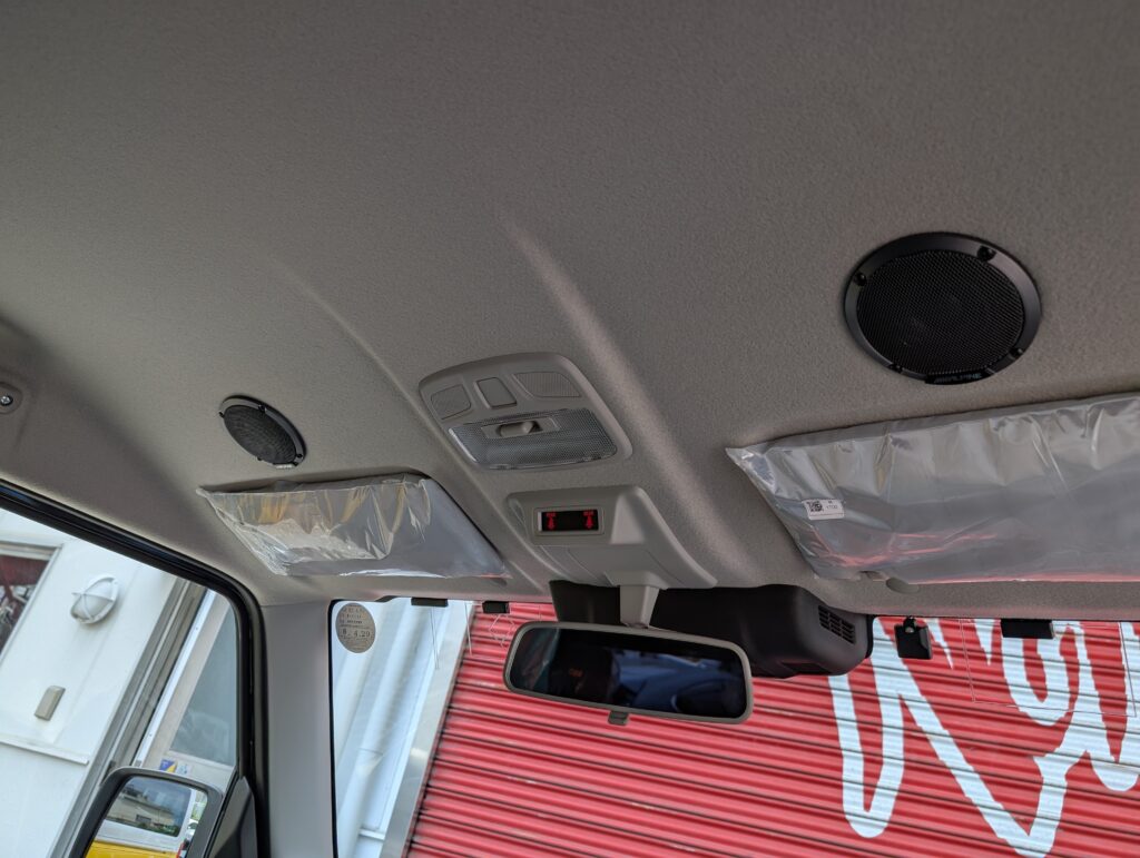 高音・中音域用ルーフスピーカーから降り注ぐサウンドに全身が包まれ低音域用ドアウーファーで、深みのあるサウンドを実現♫