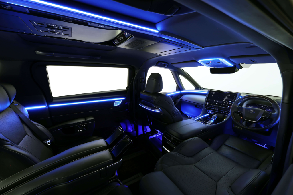 40系アルファードの内装パネル(インパネやドアトリムなど)のデコライン部分を活用して装着するため、後付け感がなく、純正品のような高いクオリティと一体感を実現しています。👍