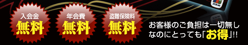 デザインだけではなく、その便利さも追求!「入会金」「年会費」「盗難保険料」が全て「無料」のお得なカード、その他にもうれしい特典満載です。この機会に是非っ!!!!!!!