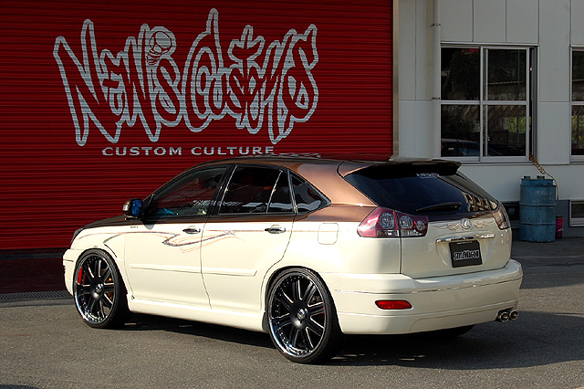 おなじみ、ハリアーカスタムを世に広めたNEW'Sデモカーです。オートクチュール24インチ、エアサス、フェンダーダクト、内装張替、高級オーディオシステム…語りだすと止まりません。フルカスタムされております。