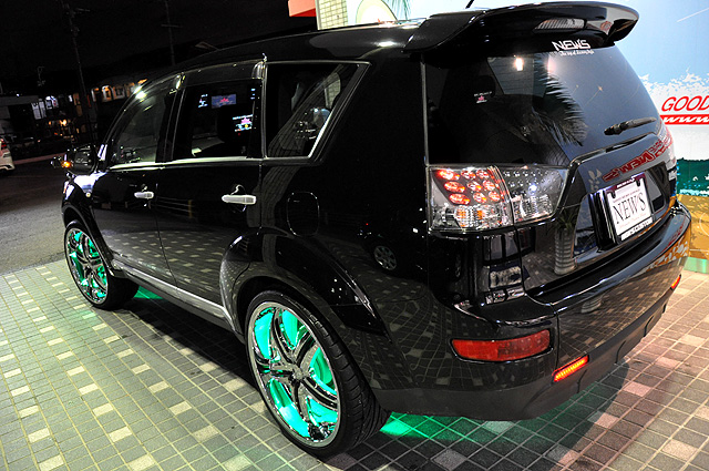SUVカスタム王道の“LUVスタイル”なアウトランダーの入庫です!ヘッドライト加工、ホイールLED、多数のモニターでナイトシーンはお任せアレ!オーディオはbitoneとZ17Proでクリアなサウンドをお楽しみ頂けます!!