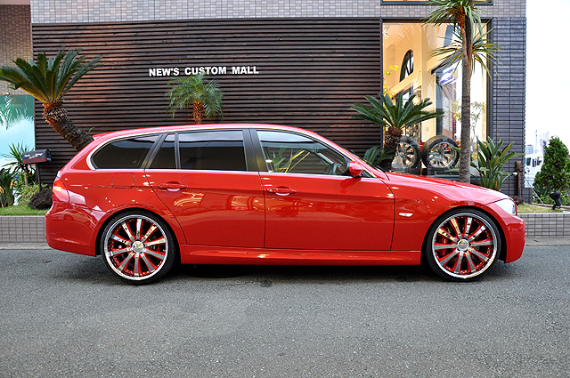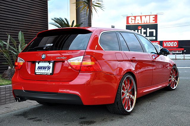 NEW'S デモカーのBMWデスッ!Mスポーツパッケージ仕様にルーフレールレス仕様で低さを強調!キラリと輝く足元は、レーベンハートLE1。しかもNEW'Sオリジナルカラーです!奥にチラリと除くF50ブレンボブレーキシステムもカッコイイですよ!内装はこだわりのオプションウッドパネル!超オススメな1台です!