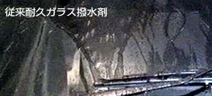 40万回のワイピングテストを行なった後にBGハイパービューと従来耐久ガラス撥水剤でコーティングされたそれぞれのフロントガラスの撥水状態を比較した。