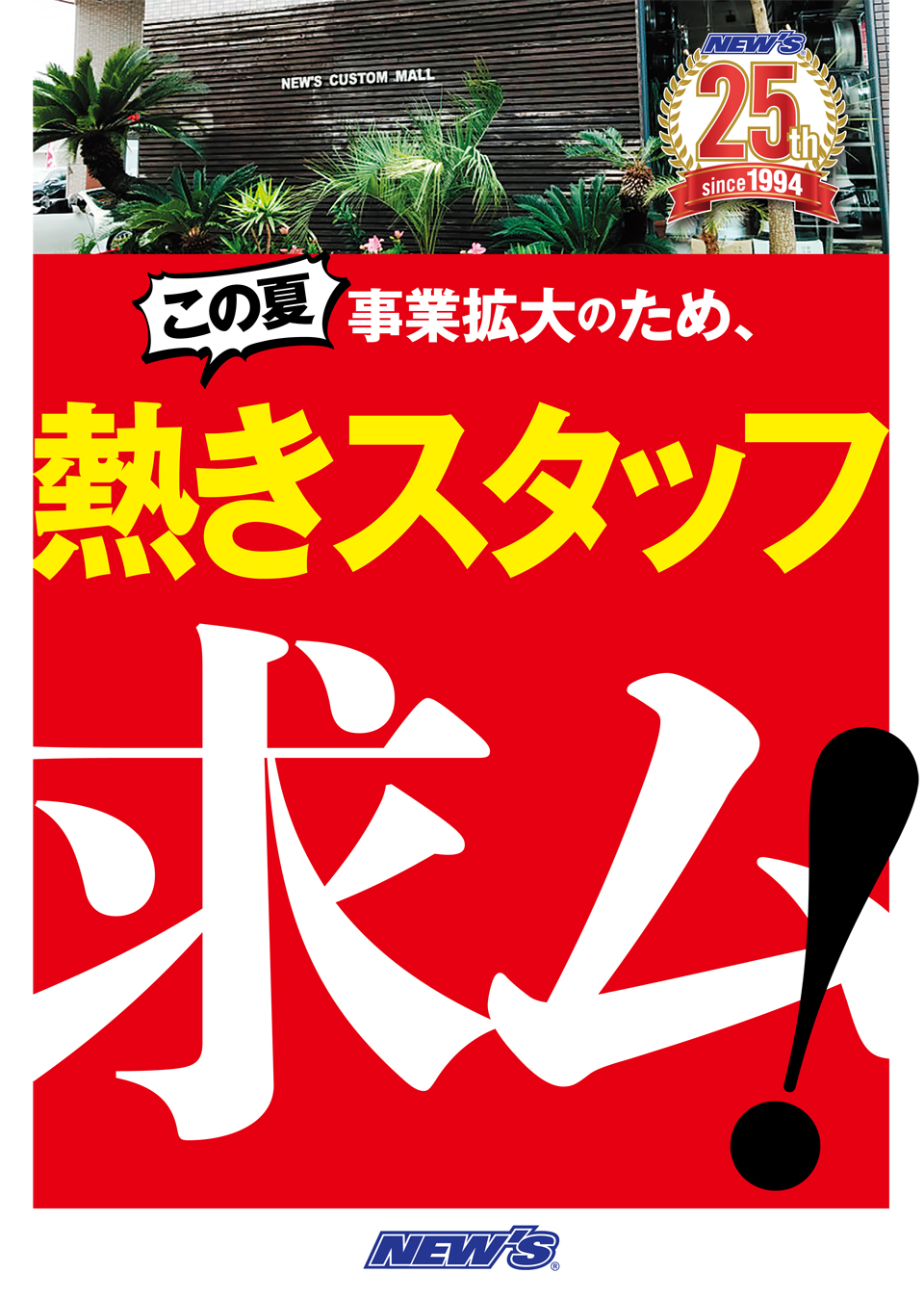• 当ホームページで掲載・紹介しておりますアイテム・パーツにつきましては一部「一般公道」での使用が出来ないもの、またエアサスなど「構造変更申請」等が必要なものもあります。商品・取り付け内容によってはお客様のご要望にお応えできない場合もございますのでご了承下さい。詳細につきましては店頭までご確認下さい。