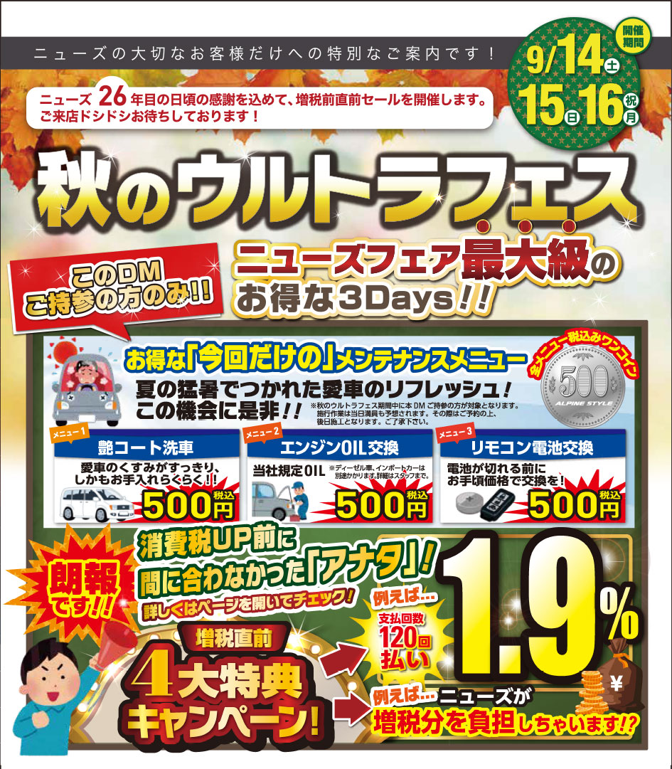 9/14(土)〜9/16(祝) 秋のウルトラフェス開催!!
