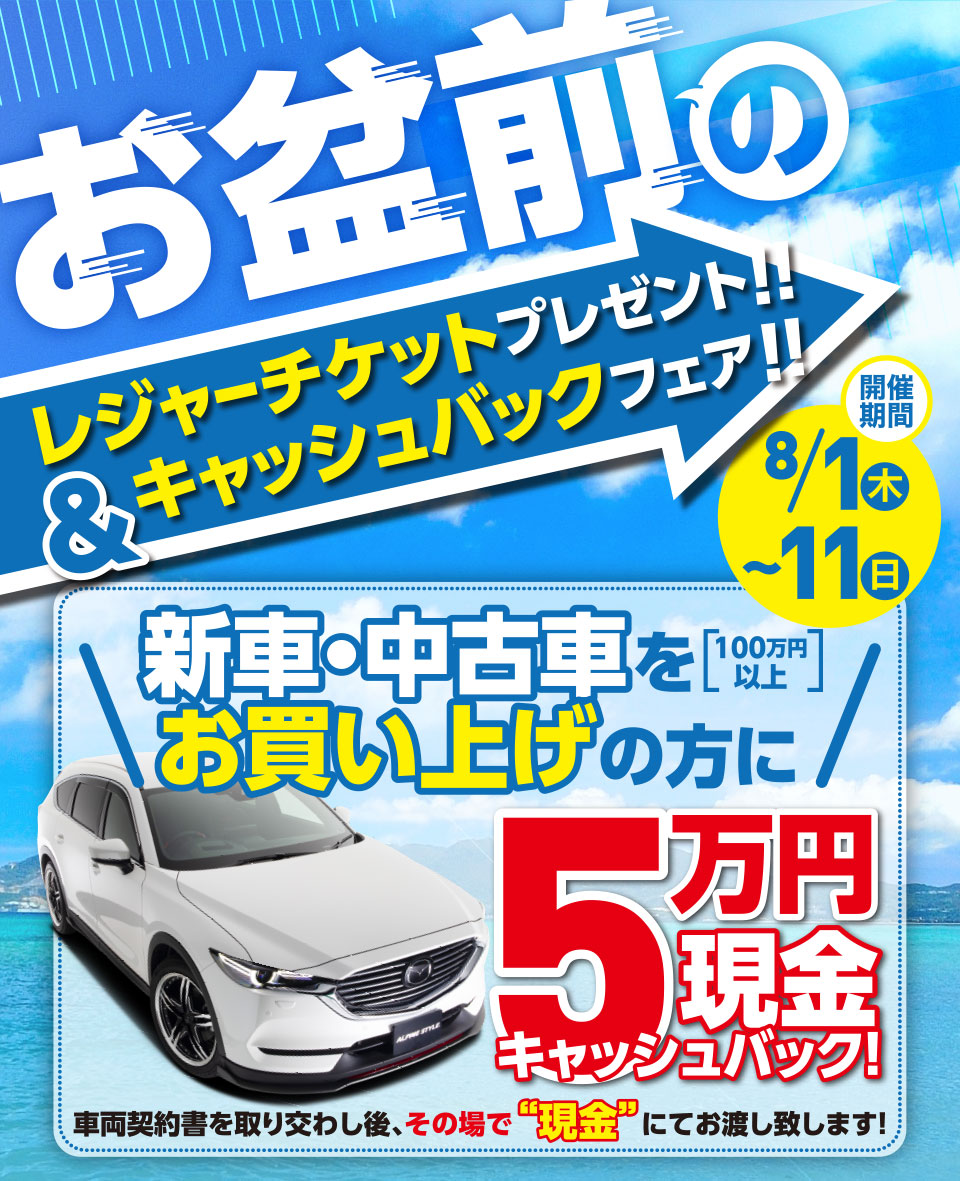 お盆前のレジャーチケットプレゼント&キャッシュバックフェアフェア開催!!