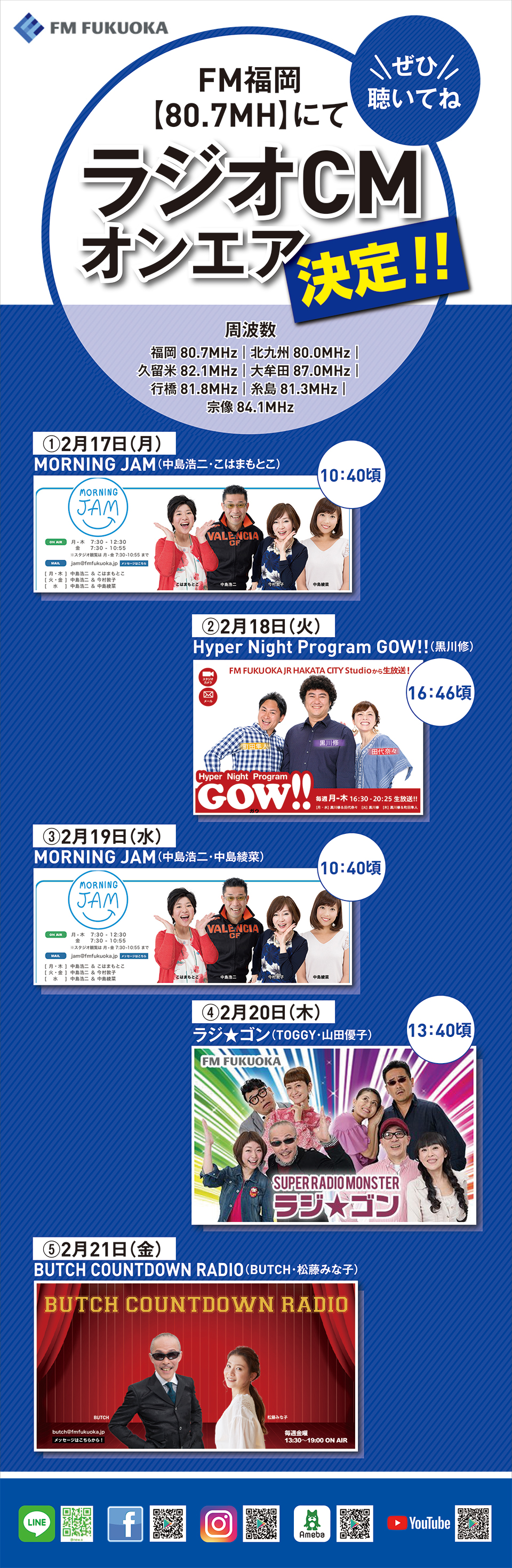 FM福岡【80.7MH】にてラジオCMオンエア決定!!