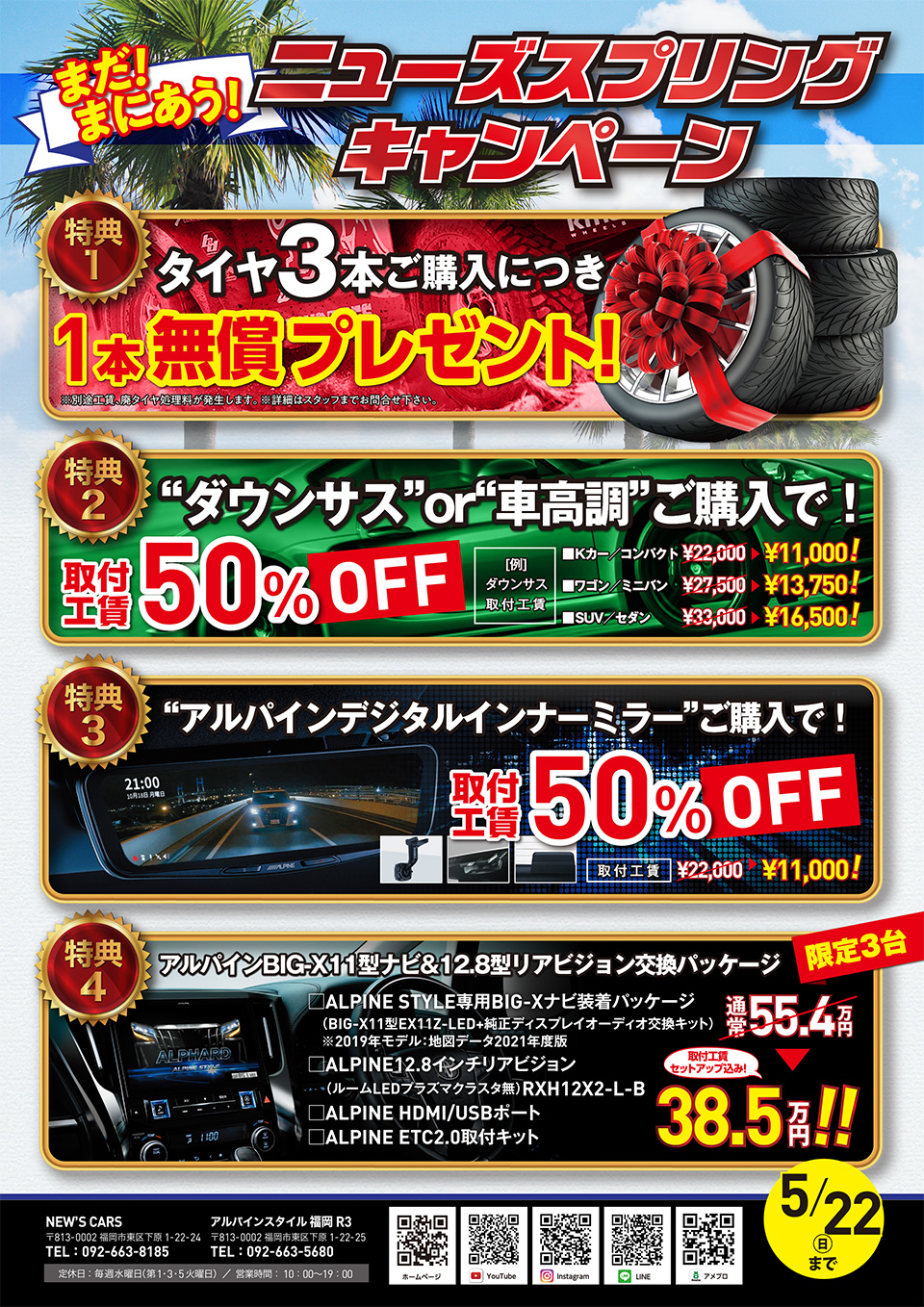 まだまだまにあう!ニューズスプリングキャンペーン開催!期間:5月22日(日)まで