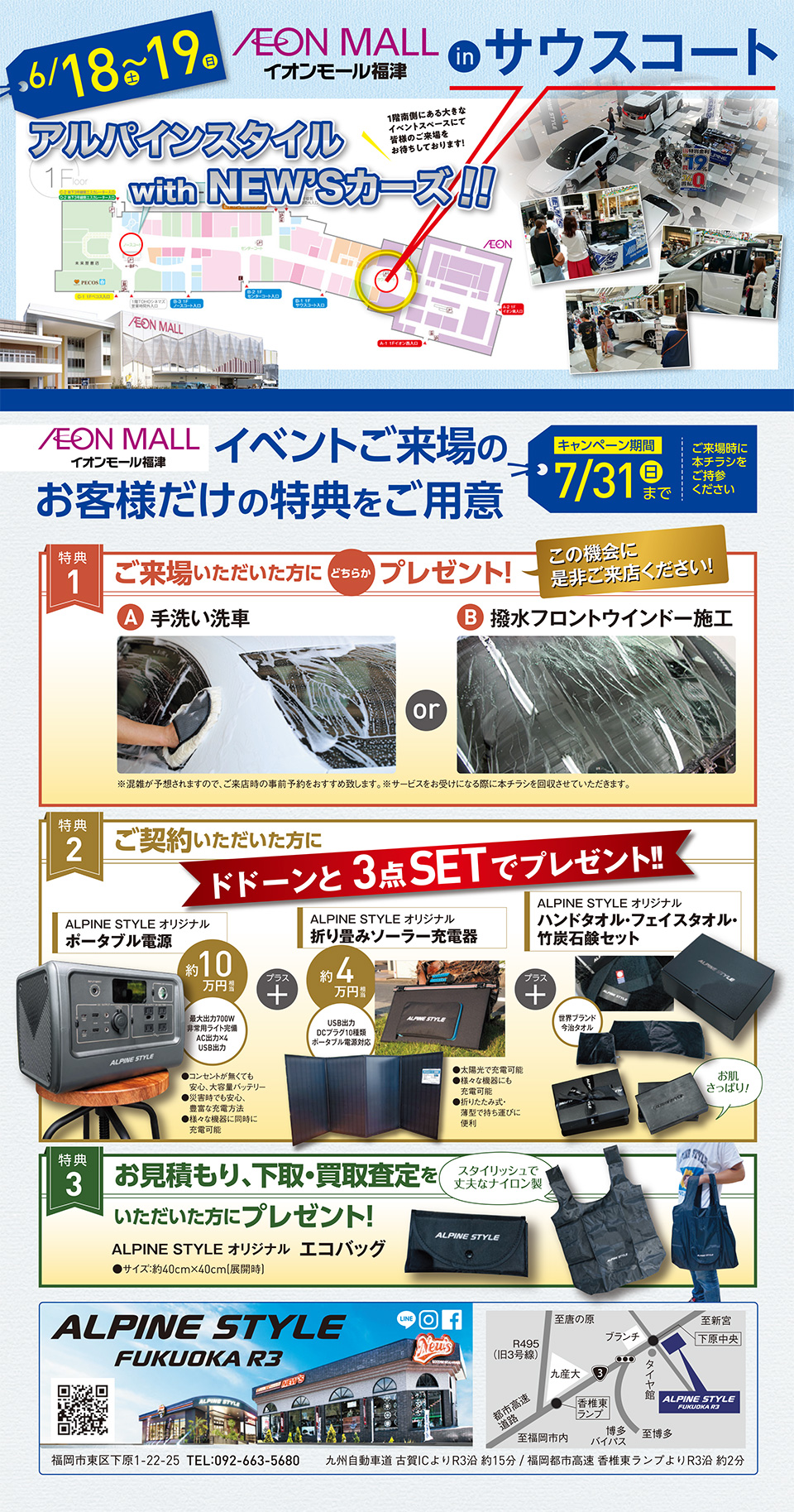 イオンモール福津」にて「ALPINE STYLE with NEW'Sカーズ大商談会