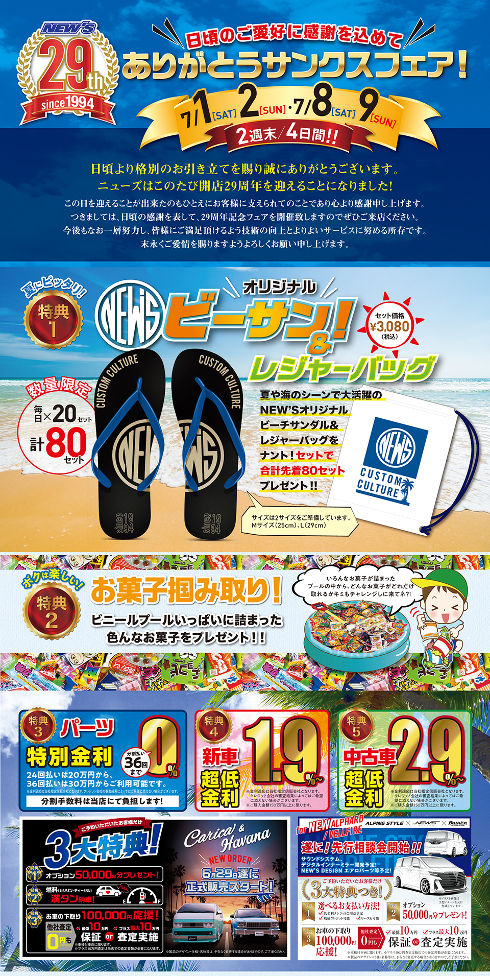 29th ありがとうサンクスフェア開催中!期間:7/1(土)・2(日)/8(土)9(日)2週末/4日間!!