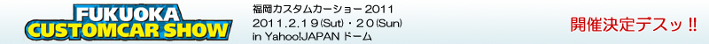 ◇日時:2011年2月19日(土)・20日(日) ◇開催時間:9:30〜18:00 雨天決行 ◇会場:福岡Yahoo!JAPANドーム ◇住所:福岡市中央区地行浜2丁目2番2号 ◇入場料:大人当日1,200円(前売り1,000円)、中学生以下無料 ◇TEL:福岡カスタムカーショー事務局 092-844-8837 九州最大のカスタムカーショー「Fukuoka Cuastomcar Show」