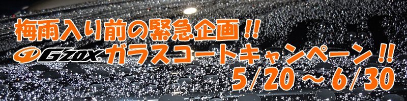 梅雨入り前のこの時期、是非お勧めしたいのがガラスコーティング!脅威の撥水力で、洗車も楽チン♪ボディもピカピカ♪♪ 「コーティングを施工して、普段の手入れがすごく楽になりました」と喜んで頂いた方も大勢いらっしゃいますし、 これからの時期は雨も多くなってきますから梅雨入り前にコーティング施工をぜひお考え下さい!!