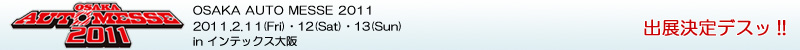 ◇日時:2011年2月11日(金)・12日(土)・13日(日) ◇開催時間:9:00〜18:00 ◇会場:インテックス大阪 ◇住所:大阪市住之江区南港北1-5-102 ◇入場料:大人当日2,500円(前売り2,000円)、中学生以下無料 ドレスアップ&チューニングモーターショー「OSAKA AUTO MESSE」