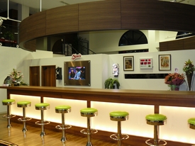 一列に並んだカウンター、カウンター下にはライト入れお客様の心を和ませます。冬は足元が暖かくてよいのですが夏は...。