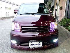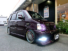 セルシオ純正色のボルドーレッドへのALL PAINTに加えてワンオフのLEDフェンダーダクトを作製!!足廻りはBOLDエアサス&NEW'SオリジナルのBL20の奥にはもちろんブレーキもしっかり強化してある見所のある一台です。エアロはクイーンズに変更!そして。。。RRのヘッドライトを後期仕様に変更してさらに中には一発入れればインパクト大なF50シーマ用バルカンライトを投入☆