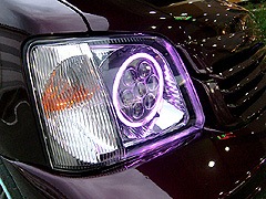 内装はクイーンズエヴィデンスのシートカバーに合わせてラメの赤ラインで天井まで張り替えています。今後の課題は内装フルペイントやカスタムオーディオだとか・・・K君、頑張ろうね!!(^^)