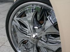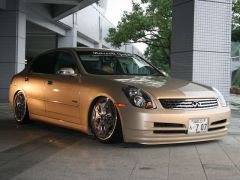 レクサスカラーでピシャリオールペイント、ツヤツヤゴールドが最大のウリです。ACCのエアサスでドーンと車高を落としレーベンLD6の3ピースホイルにスピンウィルのスピンナーでクルクル回して注目度抜群です。ボンネットまで加工して後期へッドライトを変更しています。次はマフラーとテールランプ加工ですね!