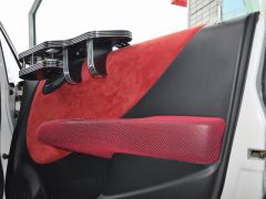 DADのシートカバーとセンスの良い自作LED加工の嵐でALPINEの5.1CHで音響面でもバッチリです。今後はオーディオの作りこみを完成させたいところですね!「ドアをアルカンターラの赤で張り替えつつなんと驚きの赤いメッシュコーディネイト、もちろん車用ではなくて「女性モノ」です、オーナー様のナイスアイデアですね!」