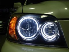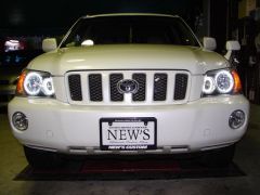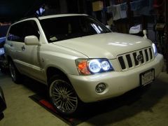 オシャレは足元からとゆうことで、ホイールは20インチをチョイス!そして…ついにキターー!!(゜∀゜)ニューズ初(むしろ全国初?!)のクルーガーへのヘッドライトイカリング加工!それもハイ&ローの4灯です!!しかも鹿児島を朝出発しニューズにピットイン取り付けして終了後、その足でまた鹿児島へ…とゆう気合の日帰りプラン!を実行してしまうSさん!さすが鹿児島人! お疲れっした!!m(_ _)m