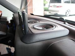 外観のブルーLEDに合わせ、車内もブルーで統一しました。仕事柄ラゲッジに荷物を乗せる機会が多いとの事で、ラゲッジスペースを確保しつつ、見せるインストールを課題に製作しています。またお手持ちのオンダッシュモニターを活かしてセンター部分土台をワンオフにて作成!車内のLEDはスイッチでON/OFFできるようにしていますので、TPOにあわせて使用可能です!