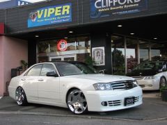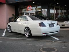 モードパルファムのエアロでラグジュアリー感をだしつつ、フロントグリル&ヘッドライトのインナーをブラック加工し引き締まった顔つきに!足元はバズレイア20インチにBOLDのアブソDSで程よく落としています!極めつけはルーフのブラックペイント!!重たくなり過ぎず、絶妙のペイント量でポイントに使用したブラック加工と上手くまとまり感がでてN様も大満足の1台になりました。