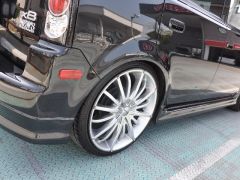 ホイールはジオバンナGレーシング/IMARI 19インチにブラックスポークのカバーにHKSの車高調でいい感じの雰囲気に仕上がってます(^^)ヘッドライトにテールランプとエンブレムは通なSCION仕様!!北米の香りプンプンなNEW’SコンプリートCarです!