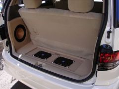 遂に完成しました!家族思いのトランクオーディオが!トランクの工具入れを使いウーハーをインストール、フロアにアンプの高さで2枚インストールしています、フタも作りましたので、荷物もガンガン載せられますよ!イクリプスのヘッドユニットナビにアルパインのスピーカーにフリップダウンモニターとコムテックのミラーモニターでお子さんも大好きなアニメやマンガを見ながら楽しいドライブを満喫されてるみたいです。