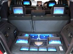 シンプルな外観とは反対に、モニターメイクやラゲッジ作込等かなりインパクトのある内装ですがアルカンターラを使用した張替えで品良くまとめているところはさすがです。音にもこだわりのある方でALPINEを使ったシステムにMM1を追加しドライブを楽しんでいるとの事です。