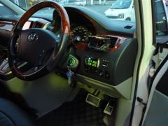 ウッドパネルを始め、ステアリング、レザーシートカバーを装着しドライブも快適。。。目の肥えたお子さんの為にヘッドレストモニターを2枚つけて、お子さんもドライブ中は大人しくされているそうです☆