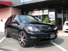 前回よりもさらに、かなりのグレードUPをしてきました!ニューズのハーフエアロでボディラインを以前よりやわらかくし、自慢のレーベンのリムペイント!さらに、よく見ないとわかりませんがフェンダーからリアにかけピンストでホイルリムと同じく深いレッドのラインをポイントで入れました!どうです、この大人バージョンのハリアー。目立つ所とさりげなさのトータルバランスが最高です!
