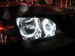 アシャンティの20インチを左右片履きで装着。選んだ柄はアリゲーター&ゼブラ!ホイルに光るゴールドがボディカラーとしっかりマッチしています。車高調で少し落として全体のバランスもバッチリですよね!遂にHIDとイカリング加工完了しました。ついでにリアテ−ルもスモ−ク加工を施しさらにク−ルな仕上がりに変身。