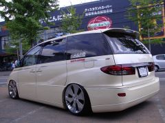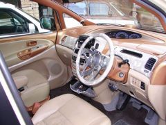 内装はオール張替え&パネルペイント!さらには大理石調のイージーグラフィックをポイントで取り入れてます!ステアリングまで!(^^)モニターもヘッドレストにフリップダウン。しかもフリップダウンは17インチの大画面で迫力満点バッチグゥ〜(≧∀≦)bオーディオもアルパインを投入し、さらにシートにはちょっとレアなベースシェーカーで臨場感を体でもビシビシ感じることができます!少し前にも小ネタミーティングを開いていたので…まだまだ進化は止まらないようです!(^^)次回速報をこうご期待!!
