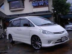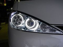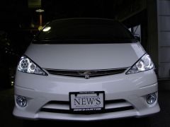 こちらのエスティマ、いたって純正風でホイールは変えてるね!ってな感じのおとなし気に見えますが、とんでもない!足元はしっかりとベルサス/BL-10 ジェノマ ブラッククローム 19インチにTOYOのタイヤ!足回りには BOLDのレボリューションUが装着されてます!そして、なんと言っても、このヘッドライト!…なんっじゃこりゃ!煤i゜Д゜)エスティマのライトなのに!なのに!ローには50シーマのバルカンライトで、ハイにもプロジェクター!しかもWイカリング!!贅沢仕様です!そして、エアロが装着される日も近いとか…(^^;)