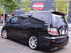こちら足元にはヴェネルディ/エレボラーニCL-310 20インチにTOYOのタイヤで、足回りは車高調でローダウンして、エアサスで車高をコントロール!することができるタナベのエアコブラを装着!そんなKさんのアルファードは、お休みで出かけるときや、通勤・営業とお仕事中も好みの車高での走行や、段差などの危険回避もなんのその!JPのフロントリップを装着しまして、今回は大物加工ですがリアバンパーをレクサスLS600hのバンパー&ディフューザーをうまく装着し仕上げました!どうですか?この重厚感!モノすごくカッコいいですね!ユーザー様のセンスが光りますね!