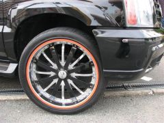 ボディサイズに負けない足元を飾るのは、アメリカンラグジュアリーの超定番とも言えるジオバンナ・24インチ!これだけでも充分なインパクトですが、「人と同じはイヤ!!!!」と言うコダワリ派のY様は、ポイントカラーとしてオレンジをチョイス。ホイルリムをペイントし、バランスを考えてボディにもデコラインを入れました。派手すぎず、でもしっかり主張してくれる大人のアメ車の完成です。