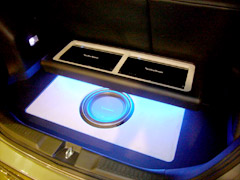 インパネ部分をブラックにペイントし、オーディオはヘッドユニットやスピーカーはアルパインでトランクにロックフォードのアンプとウーファーを使いながらブルーLEDを間接照明風に照らしながらオーディオの作り込みヤッちゃってます☆