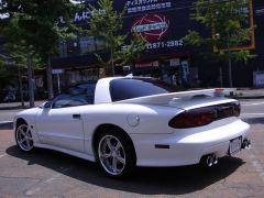 この車は正規には日本に入荷していないレアな年式です、しかーーし!以外に作りこんでいます。まずはパッと目に飛び込んでくるボンネットのモリモリ。。。実はラムエアー搭載年式ではありませんので(吸気システムのこと)以前はボンネットが実はフラット、そこで海外のオークションでGETしたボンネットの粗悪?な原型を見事に整形し完成させてこのモリモリを演出しています、しかも純正4本出しの太さを52パイから109パイにスケールUP、しかもカーボン仕上げ!後期テール+バイキセノン。ホイルはスーパースターの17インチ特注サイズ、足回りはモンロー、ブレーキはディクセルクリーナーはK&N!しかも驚きなのがメンテナンスをバッチリしているので排気量が5.7Lもあるのにリッター8も走っちゃいます!!