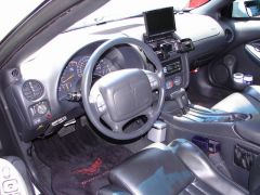 インテリアはALPINEフルシステムにゴルゴセキュリティ。。レーダー探知機は。。。そう!ナイトライダーの野島さんが声優でしゃべる「ナイト2000」搭載!実に凝っています、それから後ろが非常に見難いのでトランクの鍵穴にカメラを投入しています。。んー完璧。さすがです!