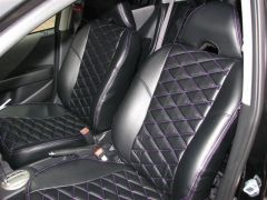 シートカバーはダイヤステッチ、パープル仕様でさりげなくオシャレ感を出しています。まずはエクステリアから決めていく計画なので、インテリアはもう少しガマンです(^^;