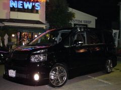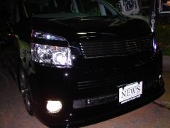 新車購入後間もないメチャクチャキレイな現行VOXYが納車当日に入庫しました!、全体を引き締めるために、ダウンサスはRS‐Rのスーパーダウンのダウンサスで程よく落として、Gスクエアのエアロにリーディングエッジのホイルでまとめて、ヘッドライトは純正から8000Kの青白い光!に合わせてポジション球も同色系に交換済み!次回はフォグランプも明るいHIDで光を統一したいっすね!!
