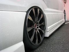 W−BLOODのフルキットに一目ぼれし、指名買いでご来店されたT様。ホワイトボディーをさらにワイドに見せるエアロにご満悦でご帰宅された数日後。。。「駐車場の段差が危険!!」と言う事で大切なエアロを守る為、エアサス装着の為再来店。さらに今回は足元を変更したいとWORK・シュバートの20インチをインサート!ホイルのインチアップで以前よりバランスも良くなりましたネ!