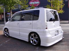 どうです?この迫力!張り出し感を極力抑えつつ、丸みを持たせラグな要素も取り入れた、ポルノ インスパイアのエアロを身につけ、マフラーも同じポルノ インスパイアで揃え、存在感がグゥ!(^^)bそしてヘッドライトもくすんで見えづらい前期から、キラキラと輝きクリアでキレな後期ヘッドライトも装着!足元にはメッキの18インチ!こうなると、せっかくの後期ヘッドライト…バシッと白く明るくしたいっすね!Yさん?(^^;)