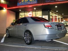 純正ラインを崩したくないと言うM様は、マーテルレオンの20インチで足元のインパクトをだしつつ、あえてエアロレスで勝負です。ポイントでミトスのミラーウィンカーを装着し、この年式の悩みでもあるヘッドライトのくすみをなくす為、新品のヘッドライトに交換しHIDを投入!顔つきを一新させました。