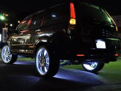 究極CR-V完成いたしました!22インチのレクサーニを黒/白にペイントしてホイル内側にLEDを仕込みましたので見ての通りすごい仕上がりになりました(^^)/ヘッドライトもインナーブラックにしてWイカリング仕様、グリルも塗り分けしエンブレムも白にペイントしアクセントにしました。少し見えにくいですがマフラーのテールエンドを黒にペイントしているのも注目です、うん!この車はキテマス!!